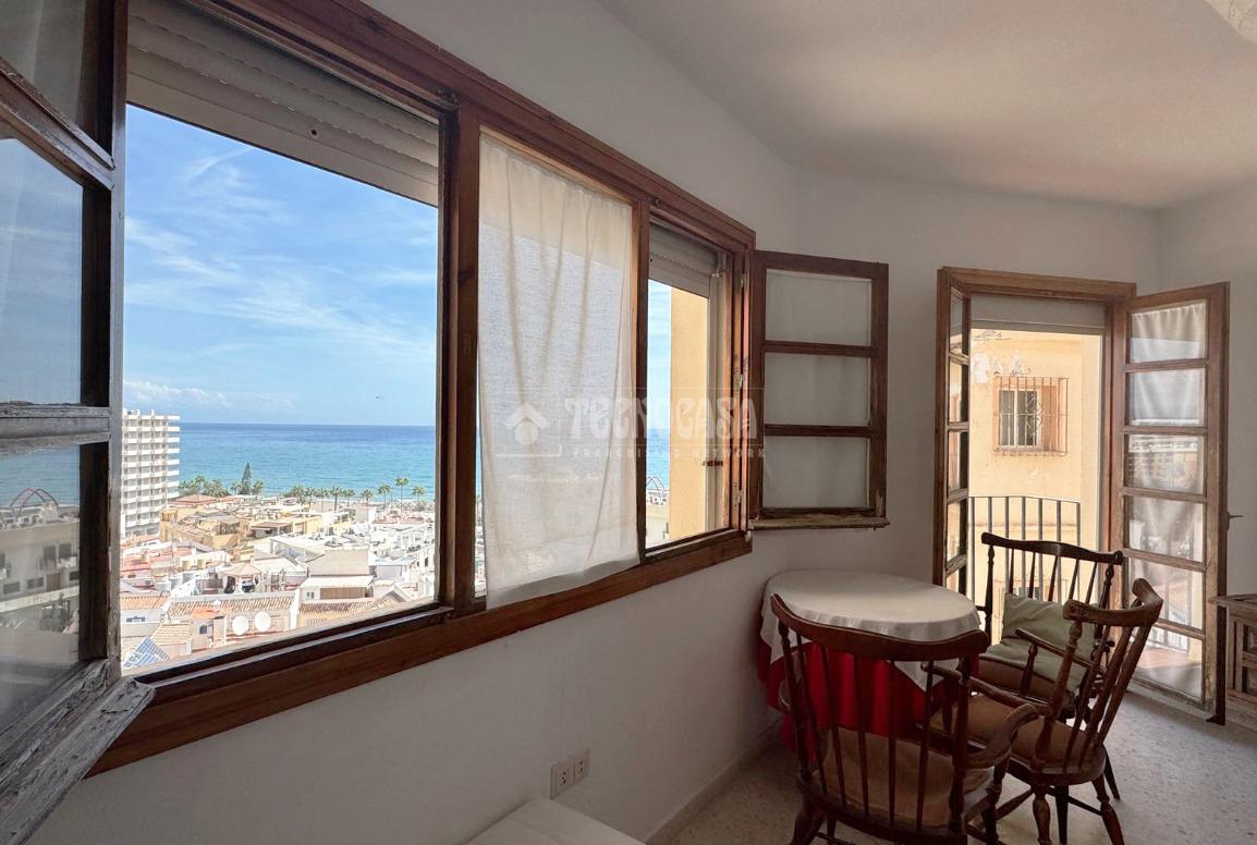 Vivienda en plena Calle San Miguel, en el corazón de Torremolinos, con vistas al mar. Se trata de un piso de 113 metros cuadrados construidos, medidos in situ por un arquitecto (85 metros útiles según la nota simple y 86 según el catastro)