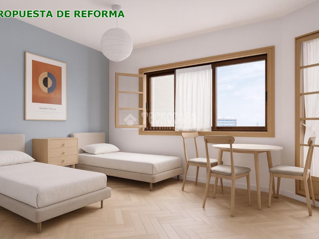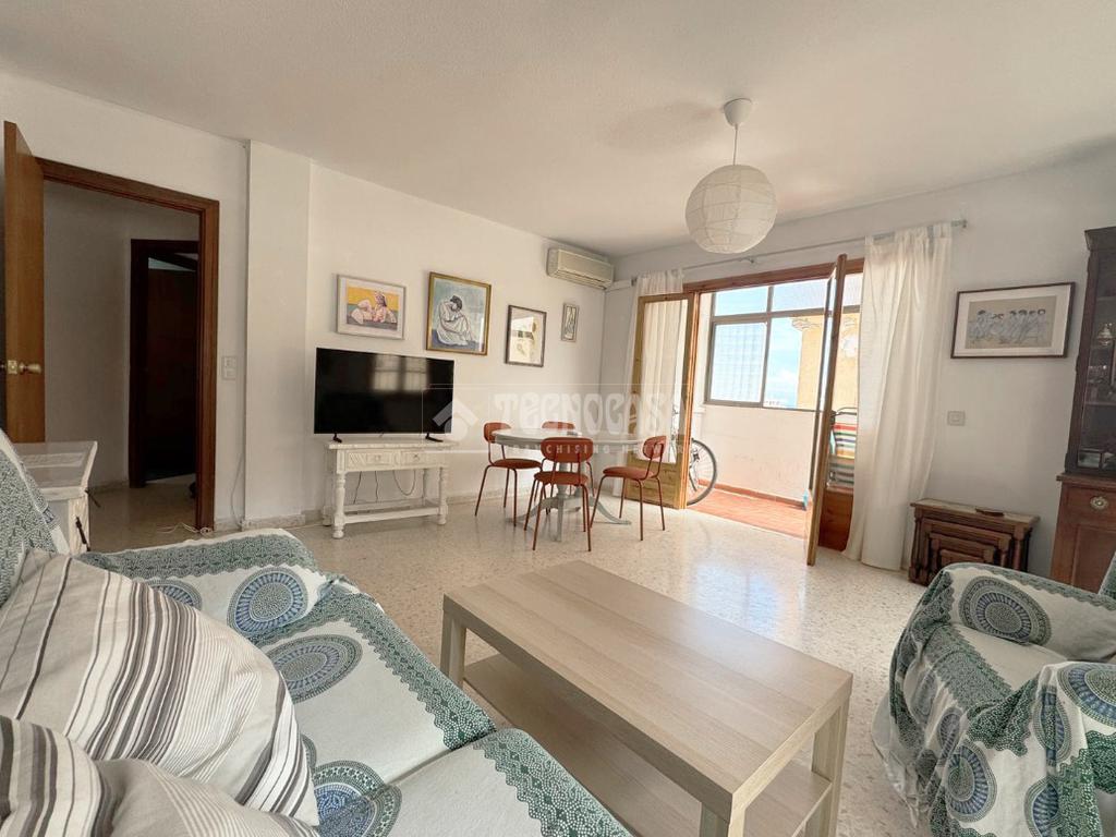 El piso se distribuye en tres dormitorios muy amplios, dos de ellos con armarios empotrados y dos balcones con vistas al mar.