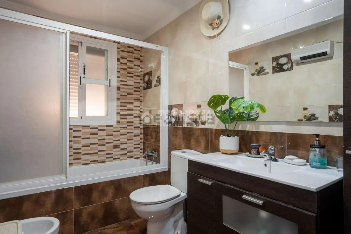 La propiedad dispone de tres dormitorios, uno de ellos con baño en suite y aire acondicionado, además de un segundo baño completo con plato de ducha. Cuenta con un amplio y luminoso salón también con aire acondicionado, con acceso directo a la terraza, cocina totalmente reformada y equipada, y un pequeño trastero en la entrada que aporta un práctico espacio de almacenamiento.
