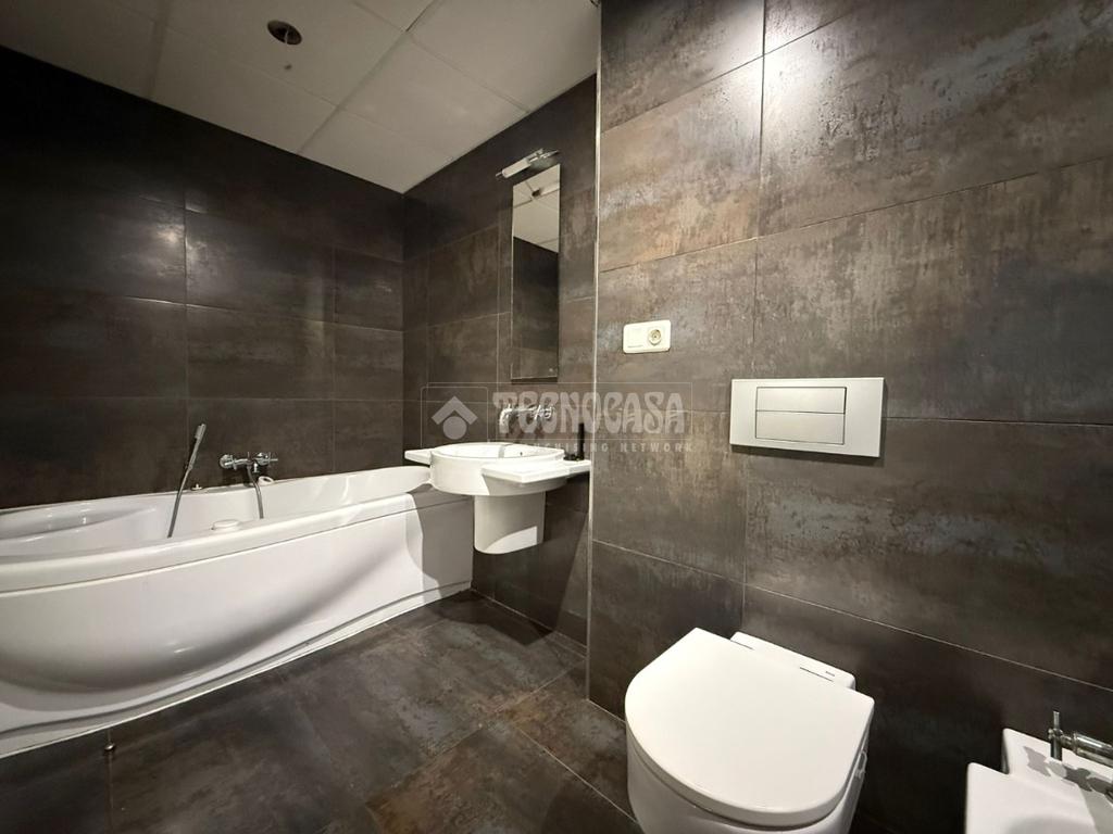 Dispone de un amplio salón-comedor con grandes ventanales y vistas despejadas, integrado con una cocina abierta de estilo actual y funcional. Cuenta con dos dormitorios luminosos y un baño de gran tamaño completamente renovado, equipado con bañera y ducha independiente. Originalmente la vivienda disponía de dos baños (uno en suite en el dormitorio principal y otro compartido), lo que facilita una posible redistribución futura.